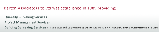 The Company is listed in the Quantity Surveying Consultancy Services Panel 3 (QS03) in the Building Construction Authority (BCA) Public Sector Panels of Consultants. In 2006, Barton Associates Pte Ltd was awarded the ISO 9001.